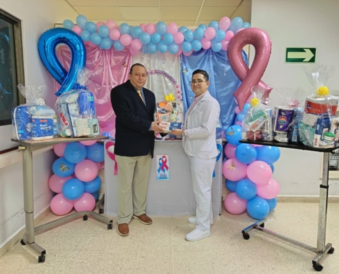 Como parte de nuestro compromiso con la comunidad y en especial con las personas adultas mayores, se realizó la entrega de una importante donación a la Sala de Geriatría del Hospital Santo Tomás, consistente en 7 canastas con productos de aseo personal destinados a los pacientes internados en esta unidad.